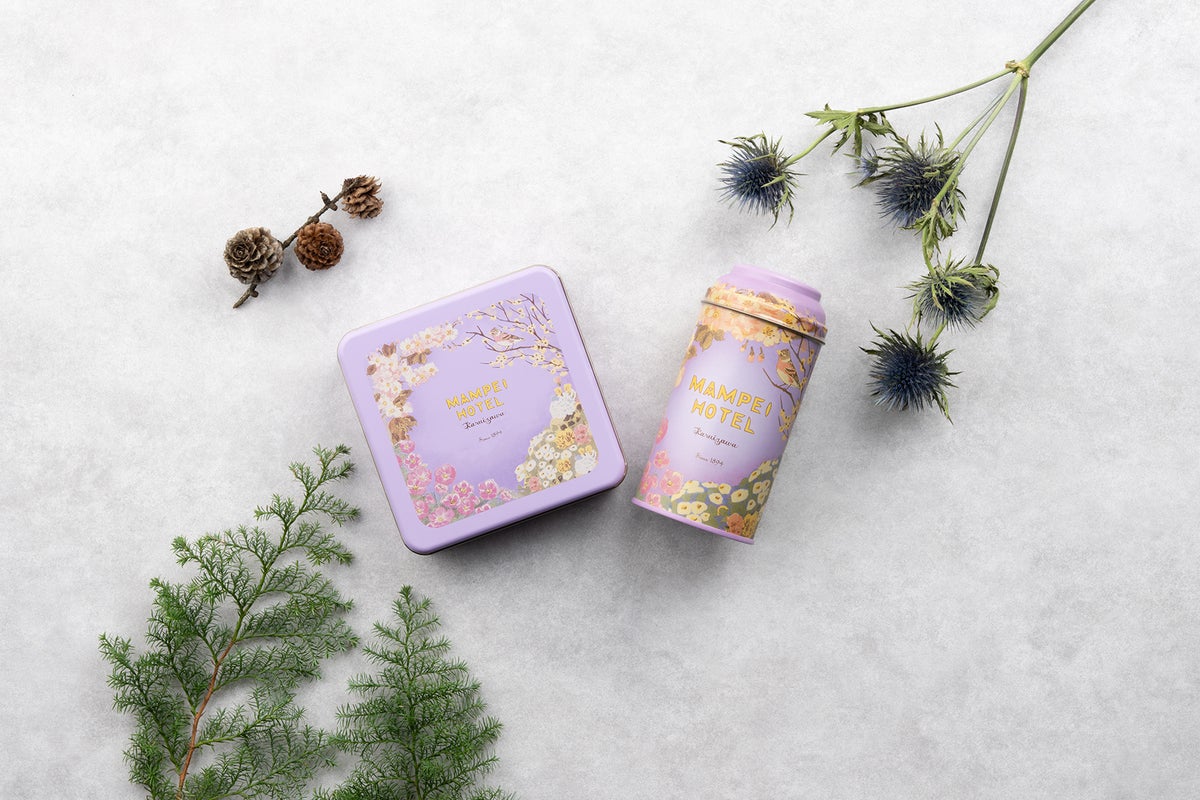 また、缶の外装には大正時代から当ホテルの「メインダイニングルーム」で使用されているメニューのデザインから着想を得た花柄をあしらいました。2025年11月の発売以降ご好評をいただいている「万平ホテルフラワークッキー缶・冬」と同デザインで、今後も「万平ホテルフラワーシリーズ」として、ハーブティー、クッキー缶ともに、万平ホテルの四季をテーマにした商品を順次発売予定です。