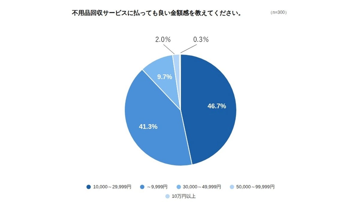 支払っても良いと思う金額帯については、「1万円以上3万円未満」が46.7%で最多、「1万円未満」が41.3%で続き、合計88.0%が3万円未満を上限として考えていることが分かりました。「3万円以上5万円未満」は9.7%にとどまり、5万円以上を許容する層はごくわずかでした。