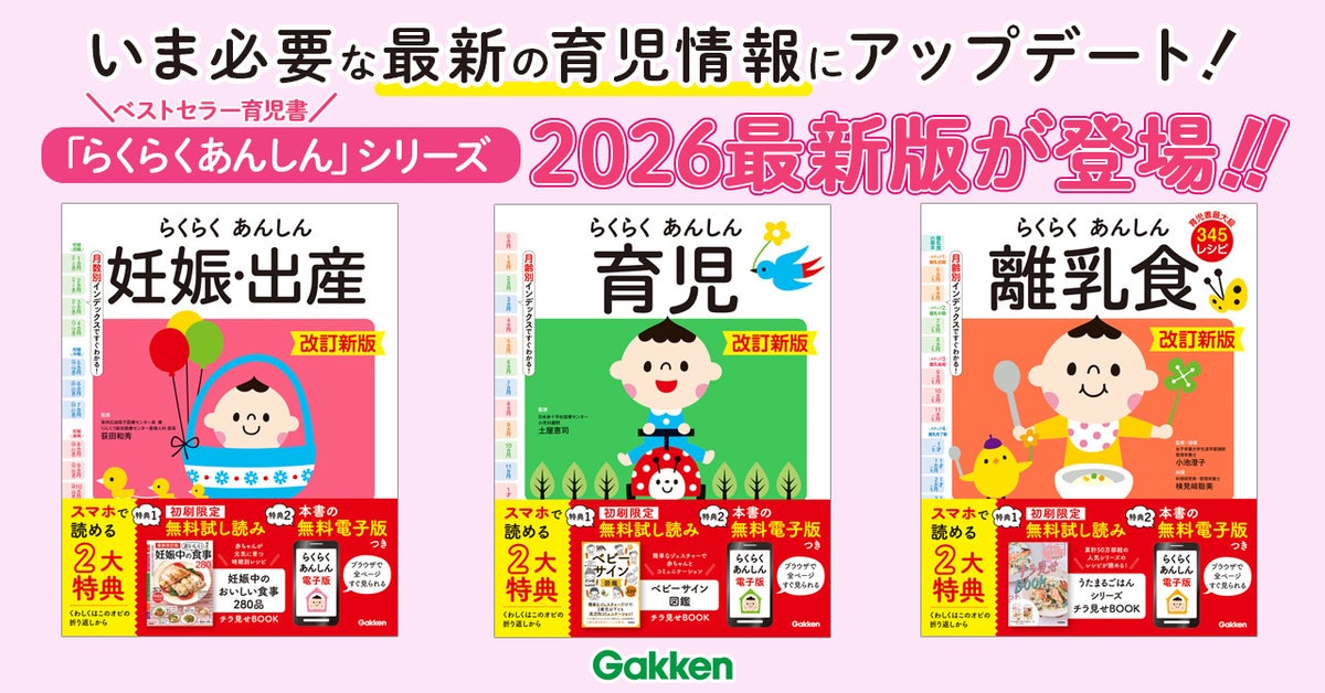 株式会社 学研ホールディングス(東京・品川/代表取締役社長:宮原博昭)のグループ会社、株式会社 Gakken(東京・品川/代表取締役社長:南條達也)は、2026年2月19日(木)に『らくらくあんしん妊娠・出産 改訂新版』『らくらくあんしん育児 改訂新版』、2月26日(木)に『らくらくあんしん離乳食 改訂新版』を発売いたしました。