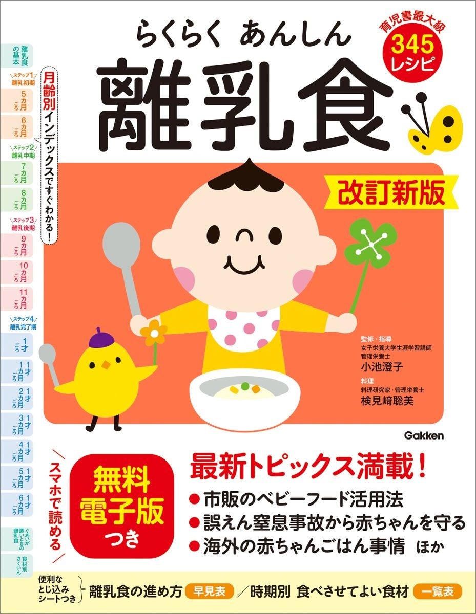 ベテランの管理栄養士が、離乳食開始から完了まで、月齢ごとに進め方&レシピをわかりやすく解説。類書最大級の345レシピの中から、我が子の成長に合わせたレシピを探すのに便利な月齢インデックスつきです。さらに、市販のベビーフードの取り入れ方、誤嚥窒息事故を防ぐポイントなどの最新情報も充実。厚生労働省による「授乳・離乳の支援ガイド」2019年改定版に準拠しています。