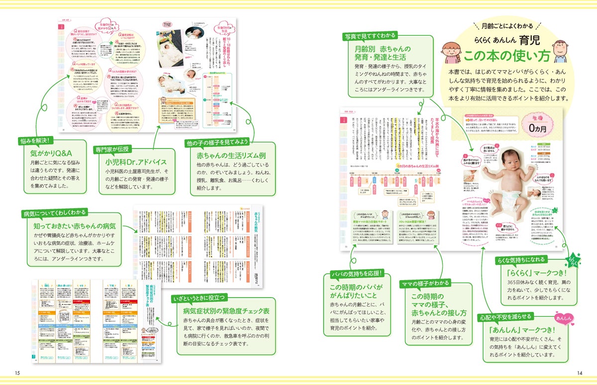 はじめてママ&パパがいちばん知りたい、生まれてから3歳までの赤ちゃんの発育・発達のポイントを、月齢ごとに写真入りで、ていねいに解説。日本小児科学会が推奨する最新の予防接種スケジュールに準拠し、知っておきたい情報をわかりやすくまとめました。赤ちゃんをウイルスから守る最新の感染症予防対策についても、しっかりと紹介しています。