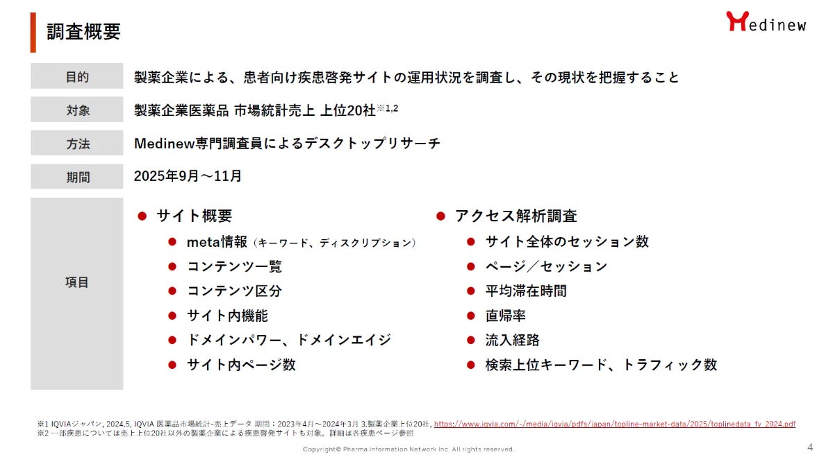 調査目的|製薬企業による患者向け疾患啓発サイトの運営状況を調査し、その現状を把握すること