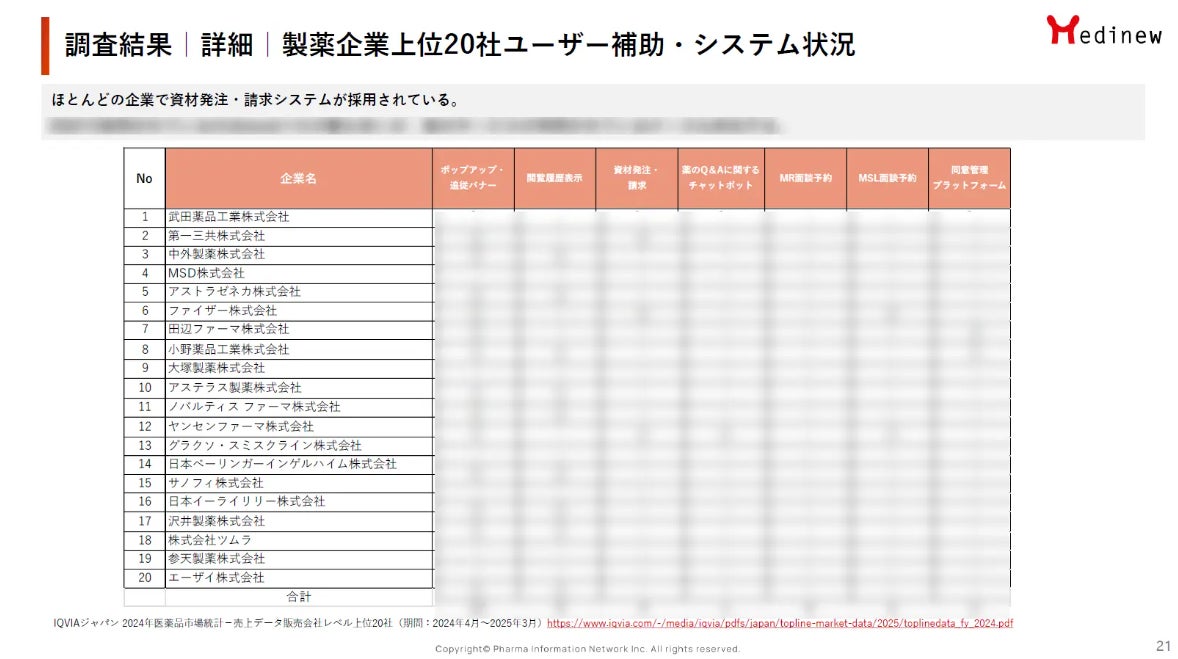 ・アクセスレポート(各社詳細):内資/外資製薬企業19社