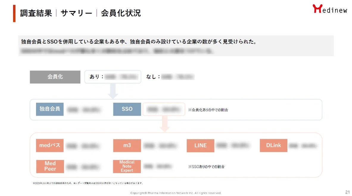 ・オウンドメディア活用状況調査:医療関係者確認、会員化、ユーザー補助、システム、グローバルメニュー