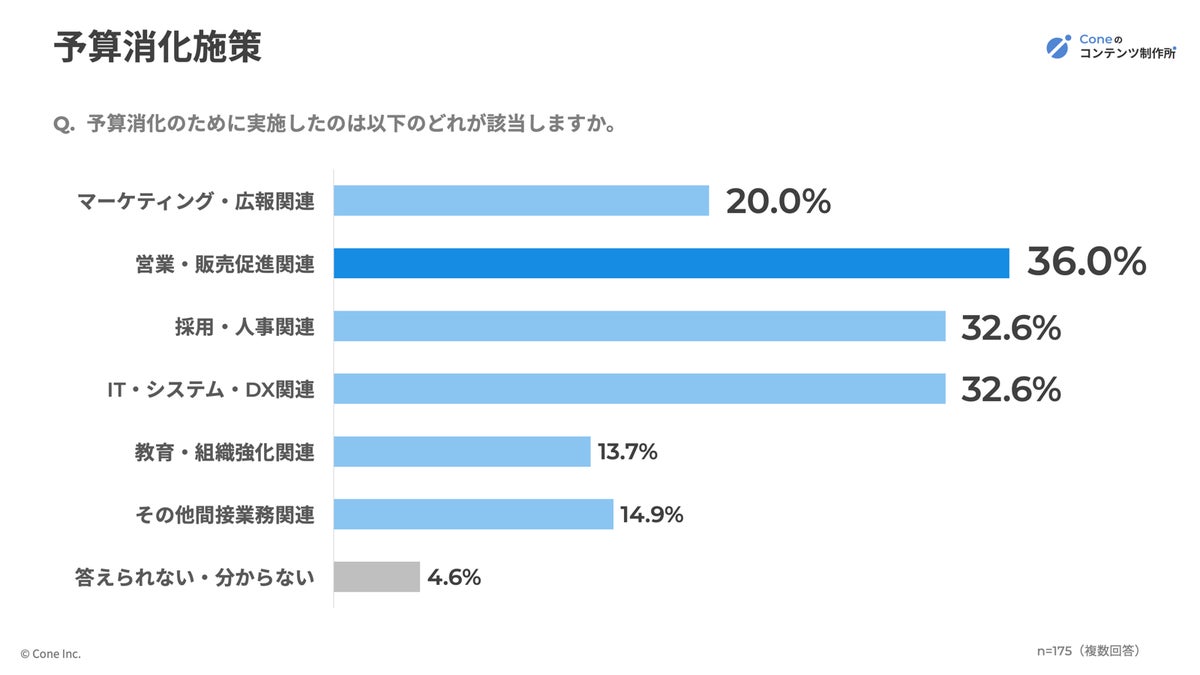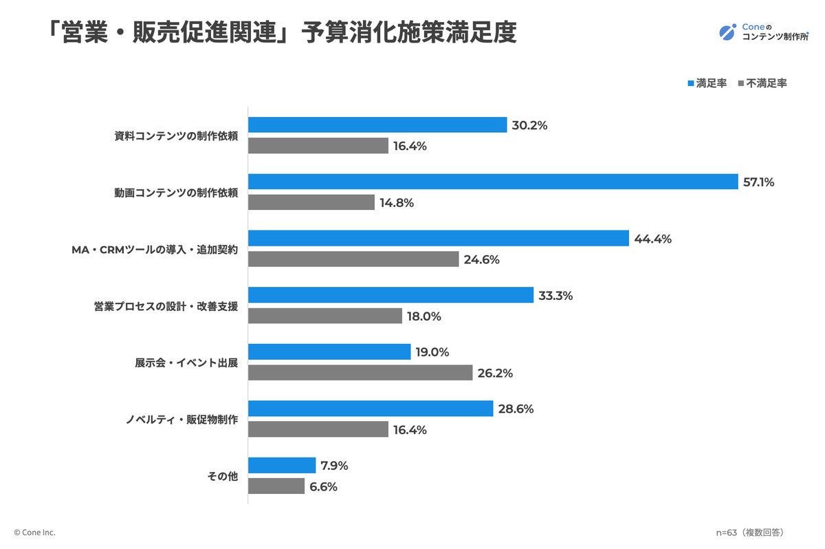 株式会社Cone(本社:大阪府大阪市、代表取締役:佐藤 立樹)は、企業において予算の決裁権・選定権を持つ担当者を対象に、「予算消化における施策満足度」に関する調査を実施しました。