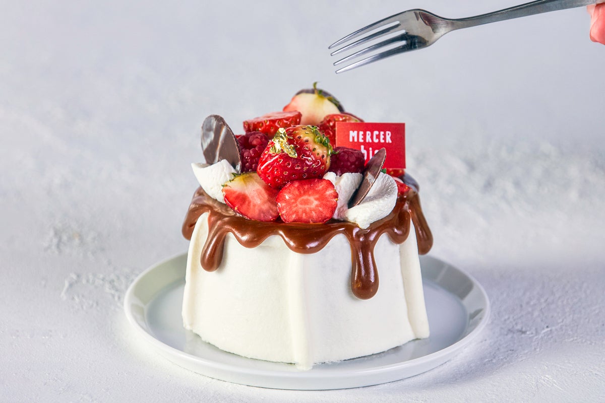 米粉と卵白を使用した、MERCER bisならではの“ふわもち”食感に、紅茶の香りがふわりと鼻を抜けるアールグレイのシフォン生地。 パティシエが火入れを見極めたほろ苦い生キャラメルソースに、まろやかなミルクチョコレートを重ねた、ホワイトデー限定の特別なソースを合わせました。 やさしく広がる紅茶の香りと、甘さとビターさが溶け合うチョコレートの余韻が、口の中でゆっくりと広がります。