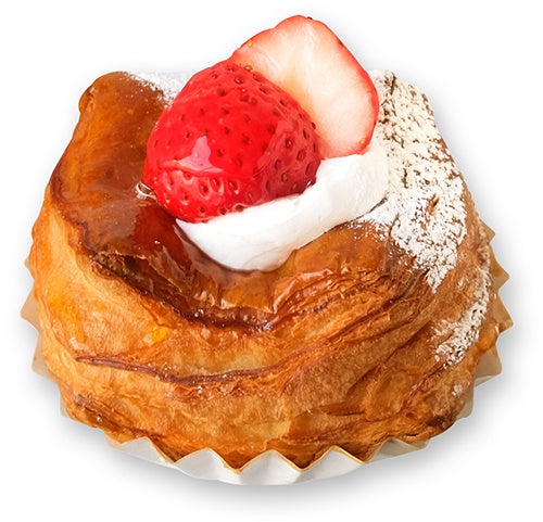 カスタードクリームとホイップクリームを絞り、苺をのせて仕上げたデニッシュです。