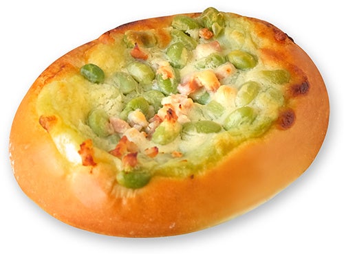 じゃがいもと枝豆のサラダにベーコンとむき枝豆を合わせ、味噌マヨソースを絞って焼き上げました。枝豆の風味とベーコンの旨みが引き立つ、満足感のある惣菜パンです。