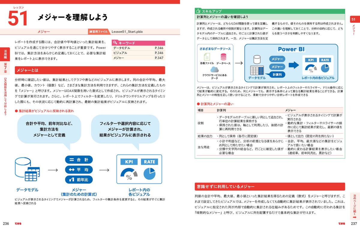 Power BIで思いどおりの分析を行うために欠かせない、集計ルールを定義する数式「メジャー」ほか、DAX関数の使い方が身に付きます