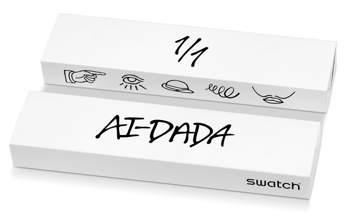 AI‑DADA の「artistic intelligence(アーティスティック・インテリジェンス)」は、時計やデザイン、イベント、アート、ストリートペインティングまでにいたる、Swatchが40年以上かけて築いてきたアイコニックなイノベーションによって育まれてきました。そのためAI‑DADA が生み出す時計はすべてがユニークで、その特別さとSwatchらしさをケースバックに刻んだ「1/1」で表現しています。