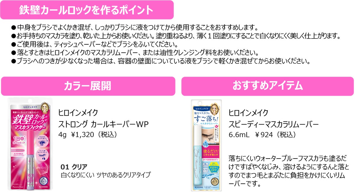ヒロインメイクから、マスカラの仕上げに塗ってヒロイン級の上向きカールを強力固定するマスカラフィクサーの新色「クリアブラック」が登場!