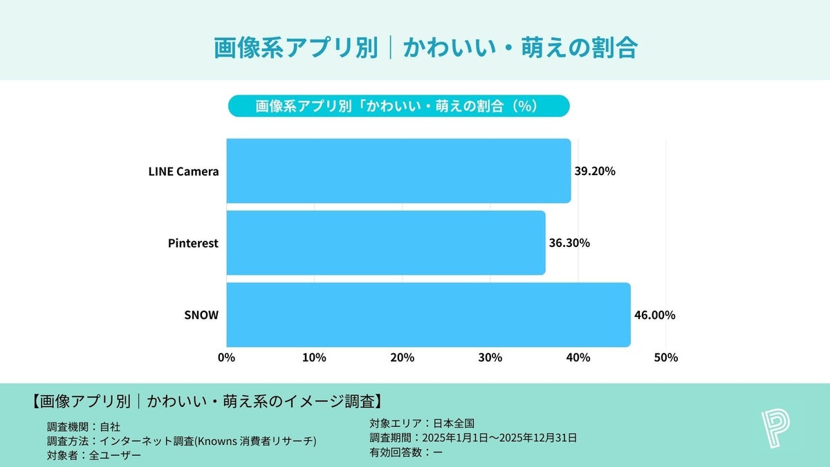 1. 「かわいい・萌え」イメージ最多はSNOW(46.0%)|次いでLINE Camera(39.2%)、Pinterest(36.3%)