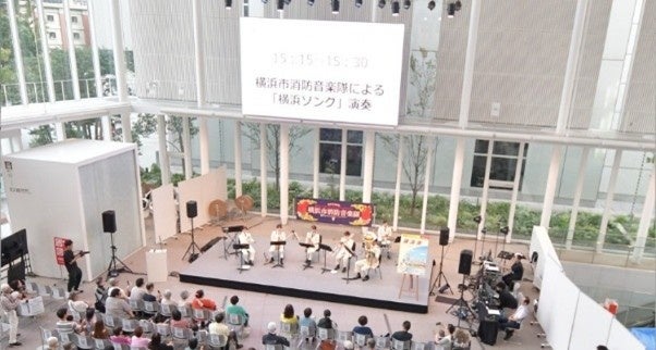 イベントの締めくくりは、横浜市消防音楽隊による横浜ゆかりの曲の演奏。「ブルーライト・ヨコハマ」や「男の勲章」など、ハマっこに馴染みの曲が流れると、来場者の歌声が自然に重なりました。