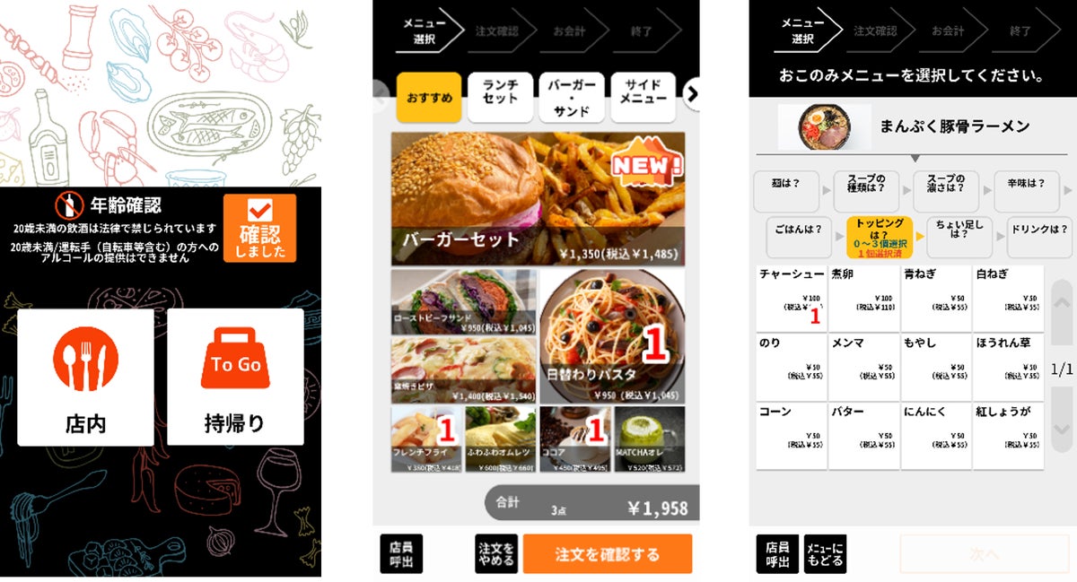 新商品やおすすめ商品のアイコン表示、トッピングの選択など、追加注文を促す機能もあります。