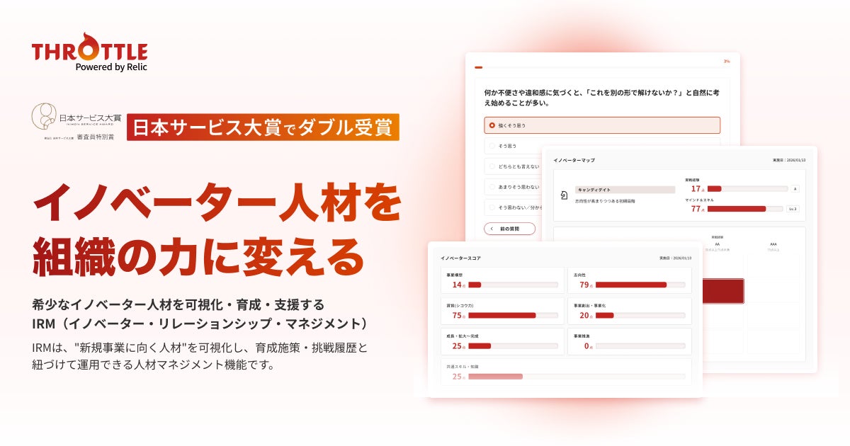 イノベーター人材を発掘・育成・可視化する人材マネジメント機能「IRM」が、国内シェアNo.1のSaaS型イノベーションマネジメント・プラットフォーム「Throttle」から新リリース