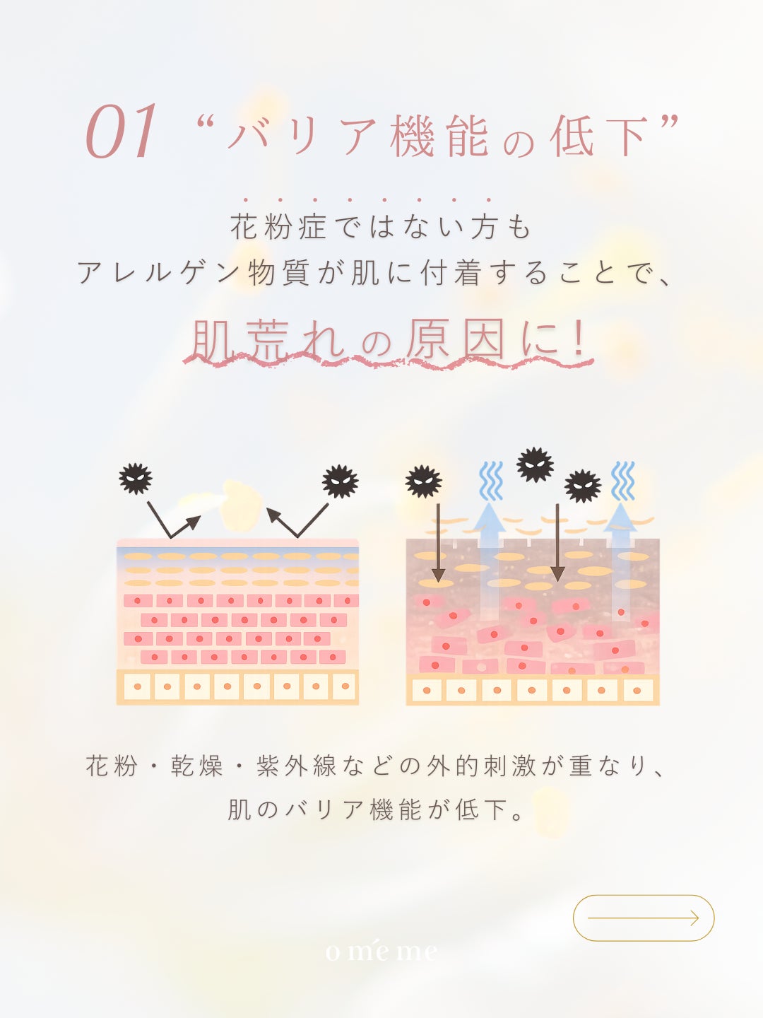 omemeが提案する「春のゆらぎケア」とは、1)バリア機能をサポートし、肌をすこやかに保つこと