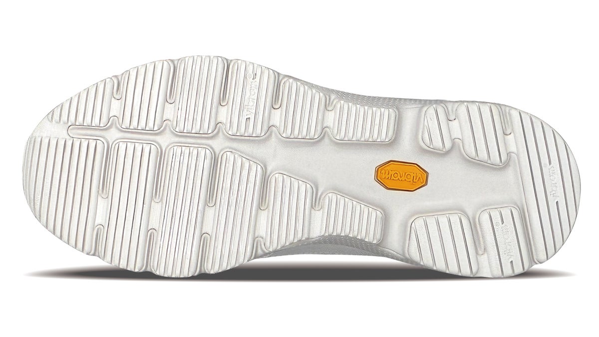 アウトソールにはvibram MEGAGRIP配合ラバーを使用し、濡れた路面を含むさまざまな環境下でも安定したグリップ力を発揮します。
