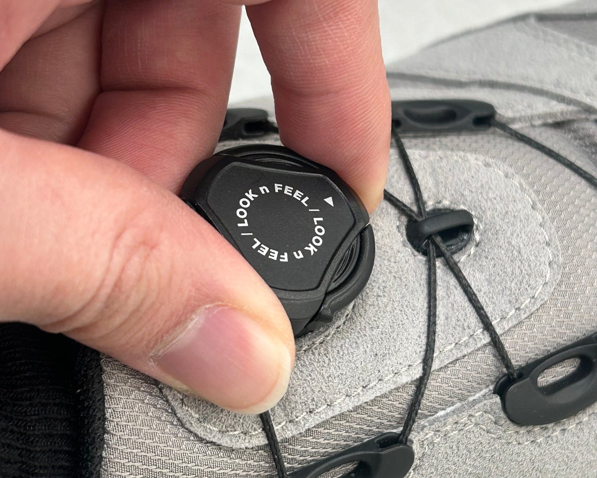 着脱のしやすさにも配慮し、ダイヤル式クロージャーシステムを搭載。シューレースを結ぶ必要がなく、ダイヤル操作によって素早くフィット感を調整できる設計としました。これにより、約5秒でスムーズに着脱が可能となり、日常のさまざまなシーンにおいて快適な使用感を実現しています。