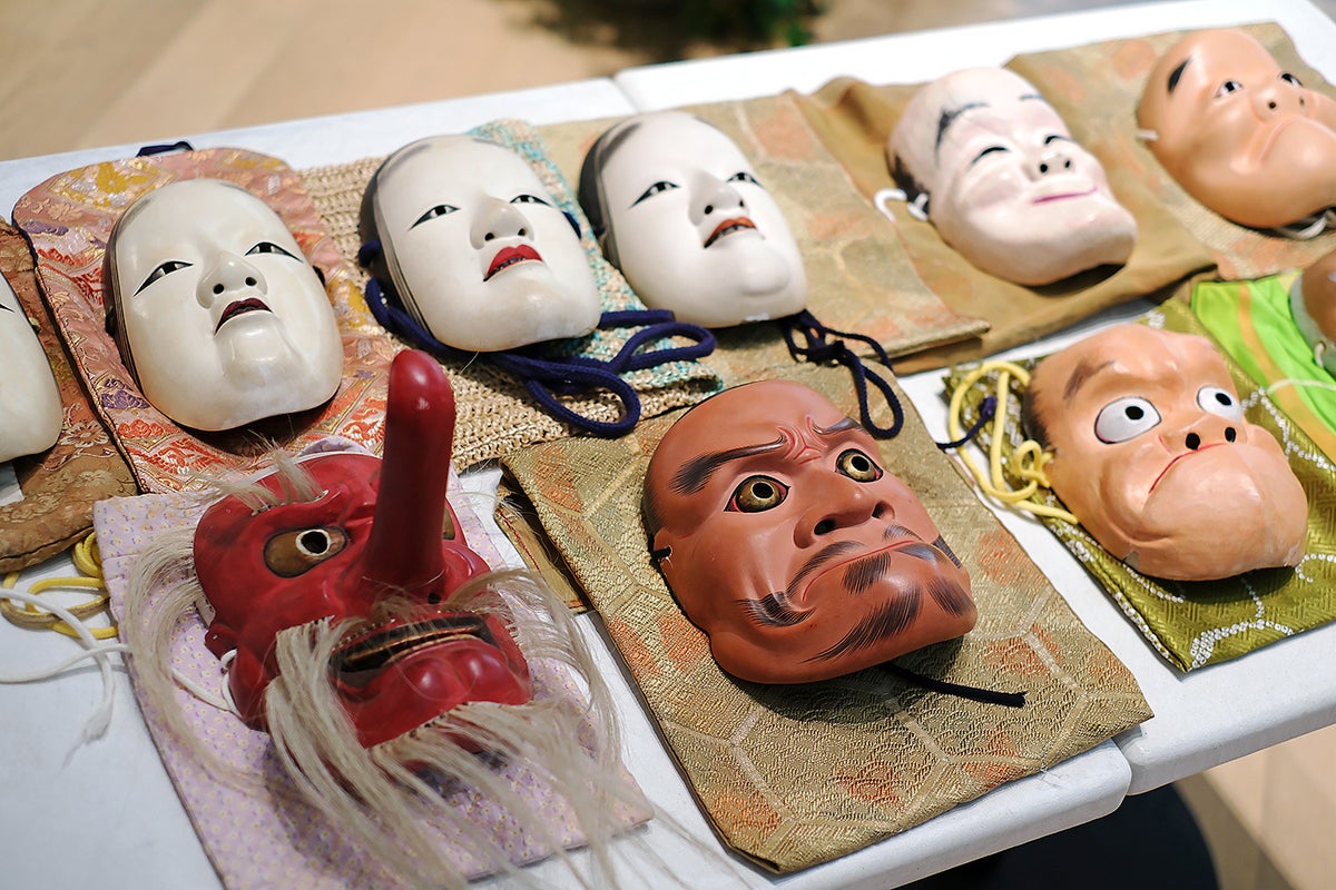本物の神楽面・衣装の展示、歴史的背景のレクチャー、実際に触れて撮影できる体験プログラム。