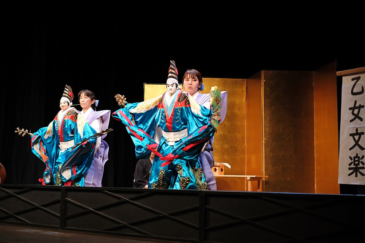 世界各国の希少な人形を収蔵する施設の「赤い靴劇場」にて、五穀豊穣を寿ぐ縁起の良い演目「乙女文楽 三番叟」を披露します。