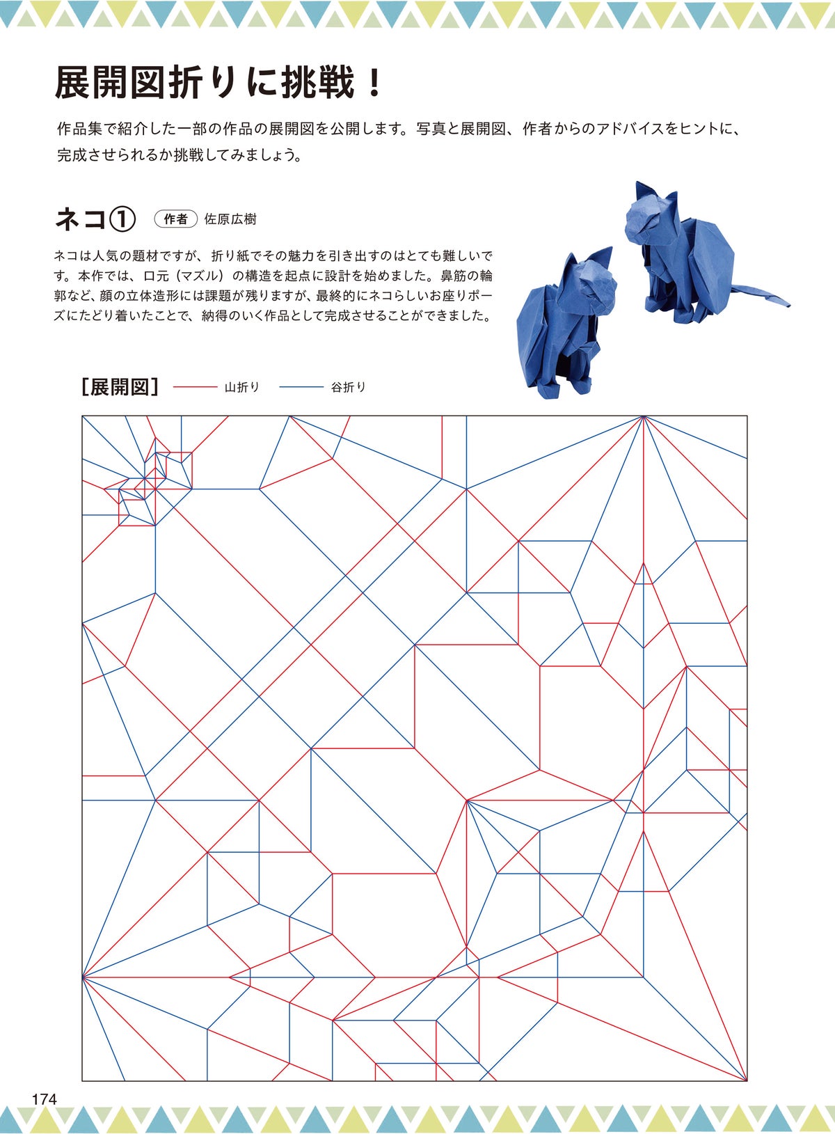折り図にすることができないほど難解な作品や、その他のOristメンバーによる多様な作品の写真と解説も数多く掲載しています。もはや芸術ともいえる作品に触れ、現代の折り紙の奥深さを堪能することができます。一部の作品の展開図を公開。写真と展開図、作者からのアドバイスをヒントに、作品を完成させられるか挑戦してみましょう!