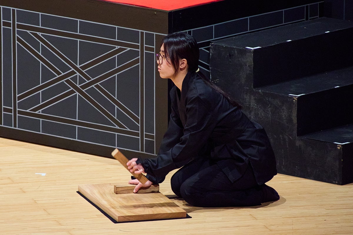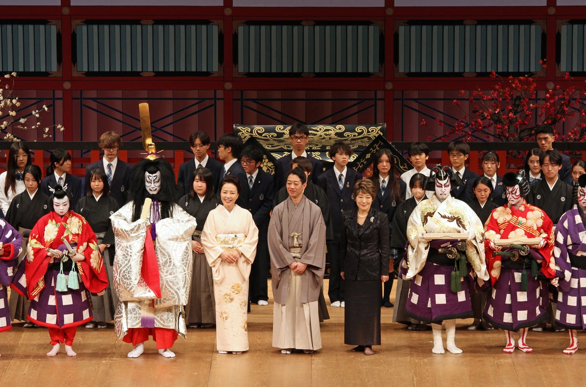 開会式ではこの度の公演でも生徒に指導を行った歌舞伎俳優・中村壱太郎氏らがお囃子演奏を披露。その後、壱太郎氏より英語で挨拶が行われました。