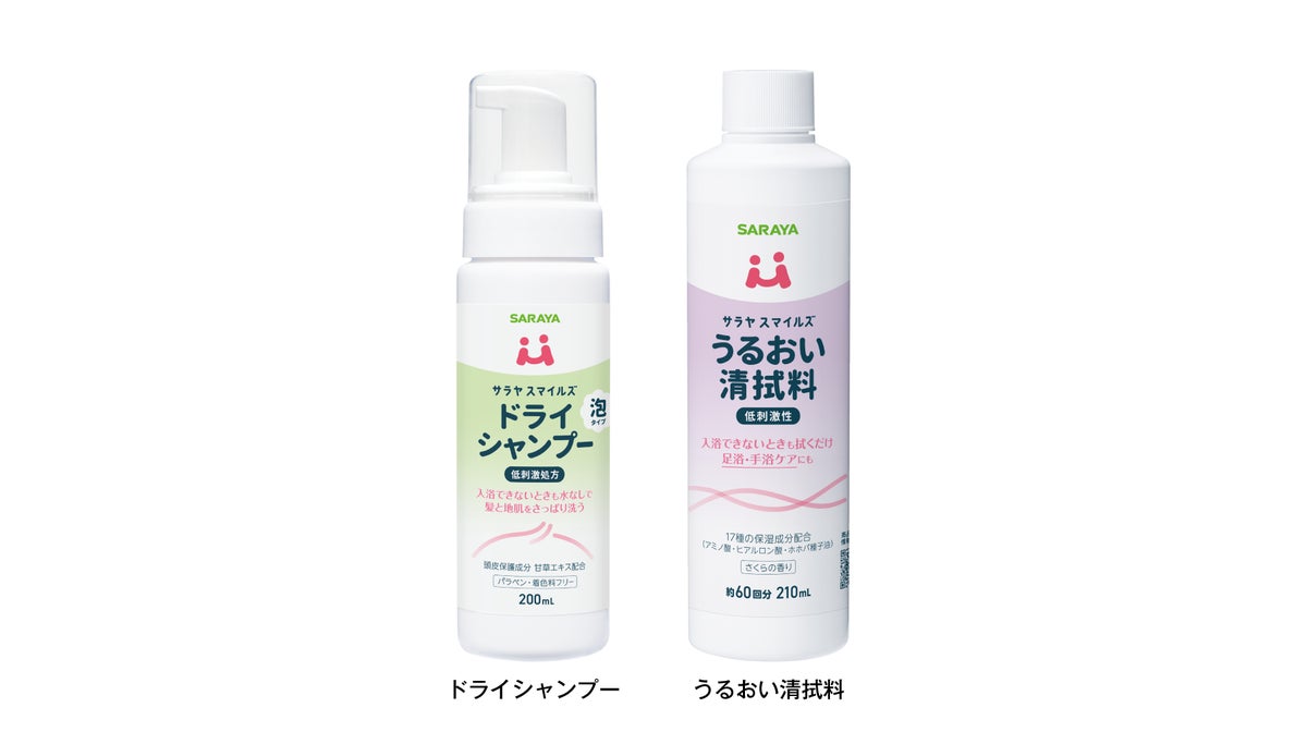 サラヤ株式会社(本社:大阪/代表取締役社長:更家悠介)は、シニアケアの総合ブランド「サラヤスマイルズ」より「ドライシャンプー」「うるおい清拭料」を2026年3月4日(水)より新発売することをお知らせいたします。