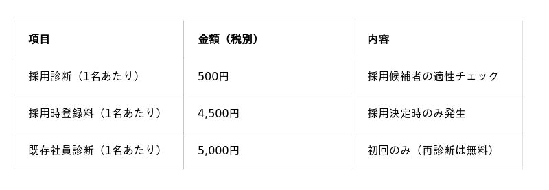 ・以降、採用候補者の適性チェックは1名500円~で都度利用