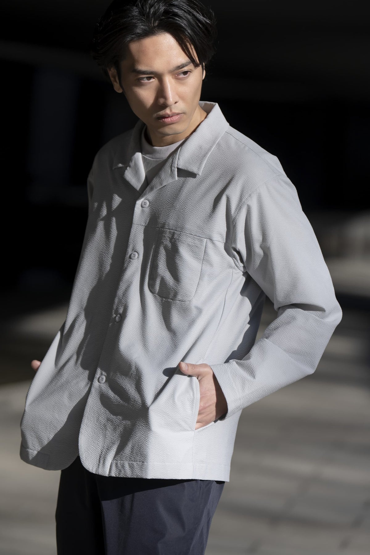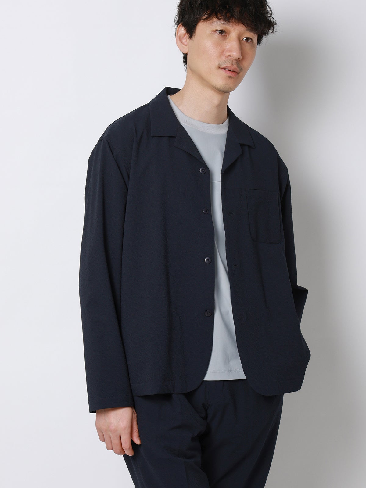 商品 ドライシアサッカー オープンカラーアウターシャツ