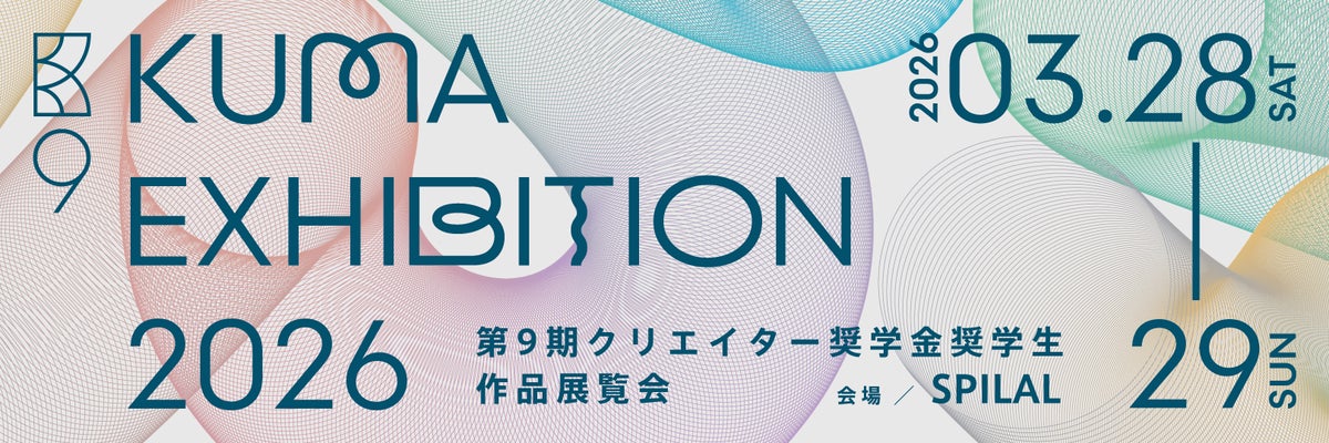 「KUMA EXHIBITION 2026」には、今年度新たに採択されたクリエイター奨学金9期生49名と、同奨学金の卒業生である「活動支援生」10名が参加し、総勢59名の若手クリエイターの作品が一堂に会します。9期生は、東京藝術大学をはじめとする芸術大学・美術大学に加え、東京大学、慶應義塾大学など、全国各地の多様な教育機関で学ぶ学生クリエイター。2025年6月に1,402名の応募者の中から選出された、次代の表現を切り拓く存在です。