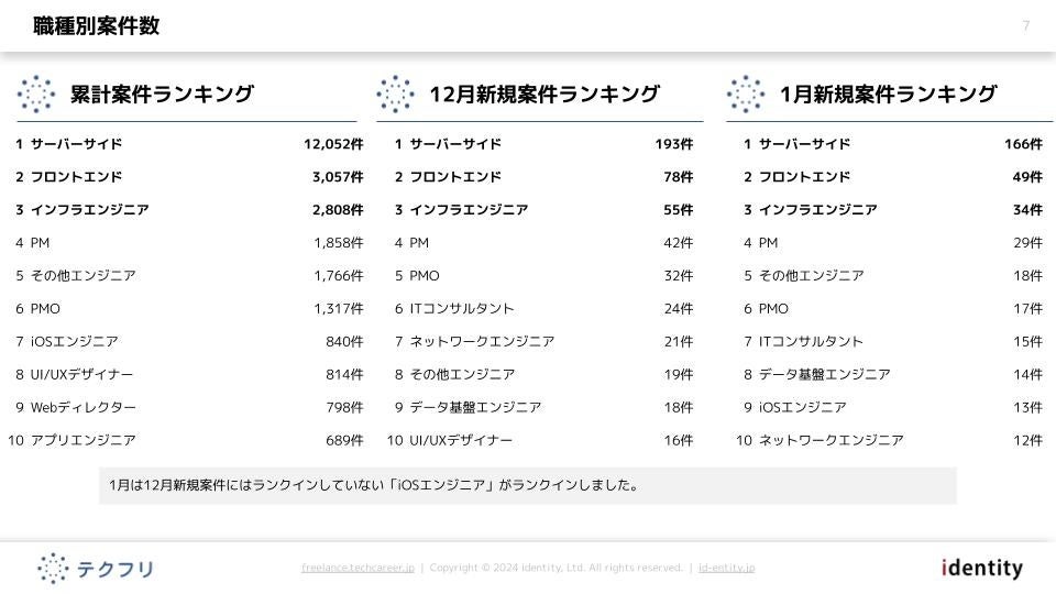 1月は12月新規案件にはランクインしていない「iOSエンジニア」がランクインしました。