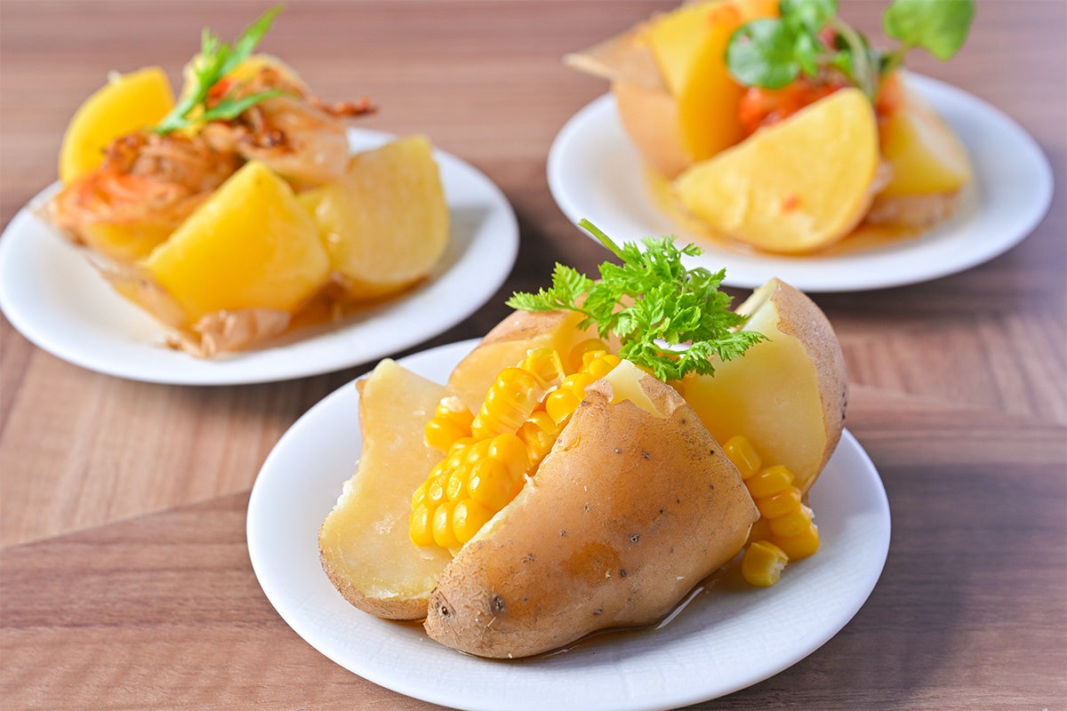 じゃがいもは「きたあかり」や「インカのめざめ」などを使用。定番のバターはもちろん、いかの塩辛やコーンなど、多彩なトッピングで味わいの変化をお楽しみください。