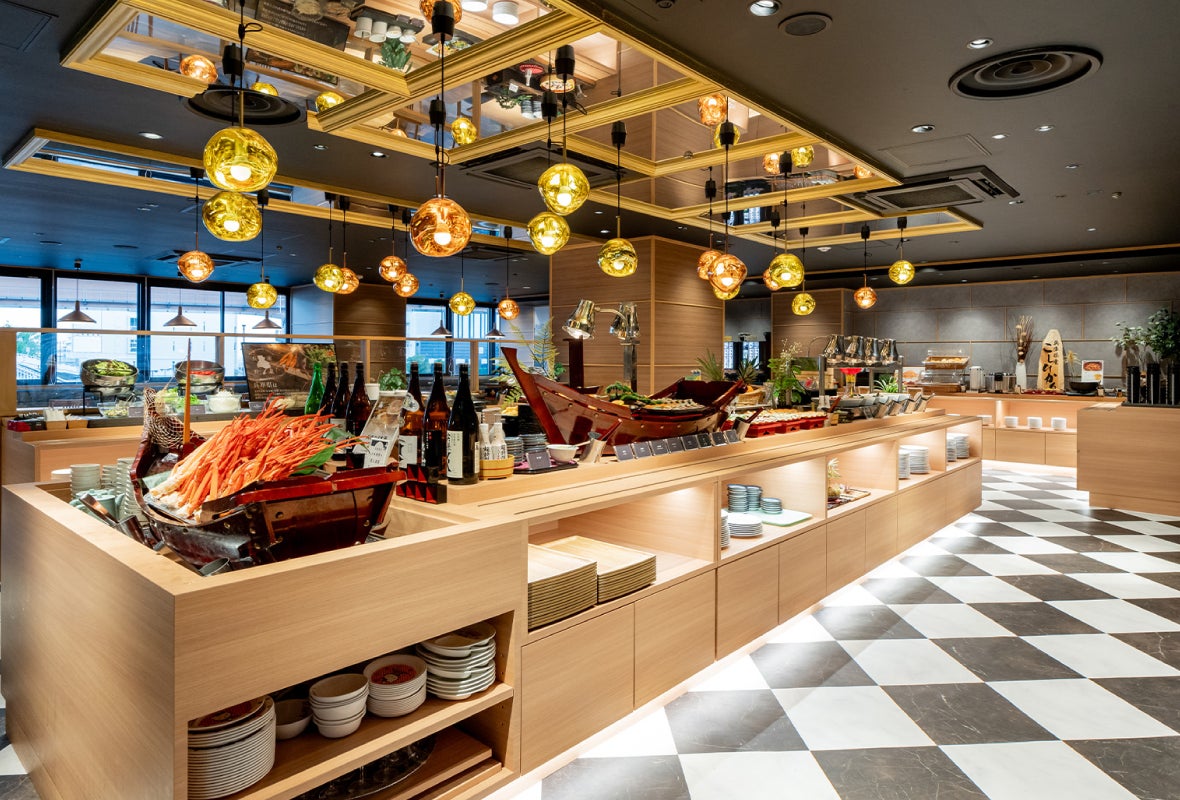 モダンで落ち着いた空間の中でバリエーション豊かなお料理をお楽しみいただけます。洋食から和食、中華にデザートまで幅広いラインナップをご用意。広々とした席配置と柔らかな照明で、ゆったりとした食事の時間を演出するなど、居心地の良さを追求しています。