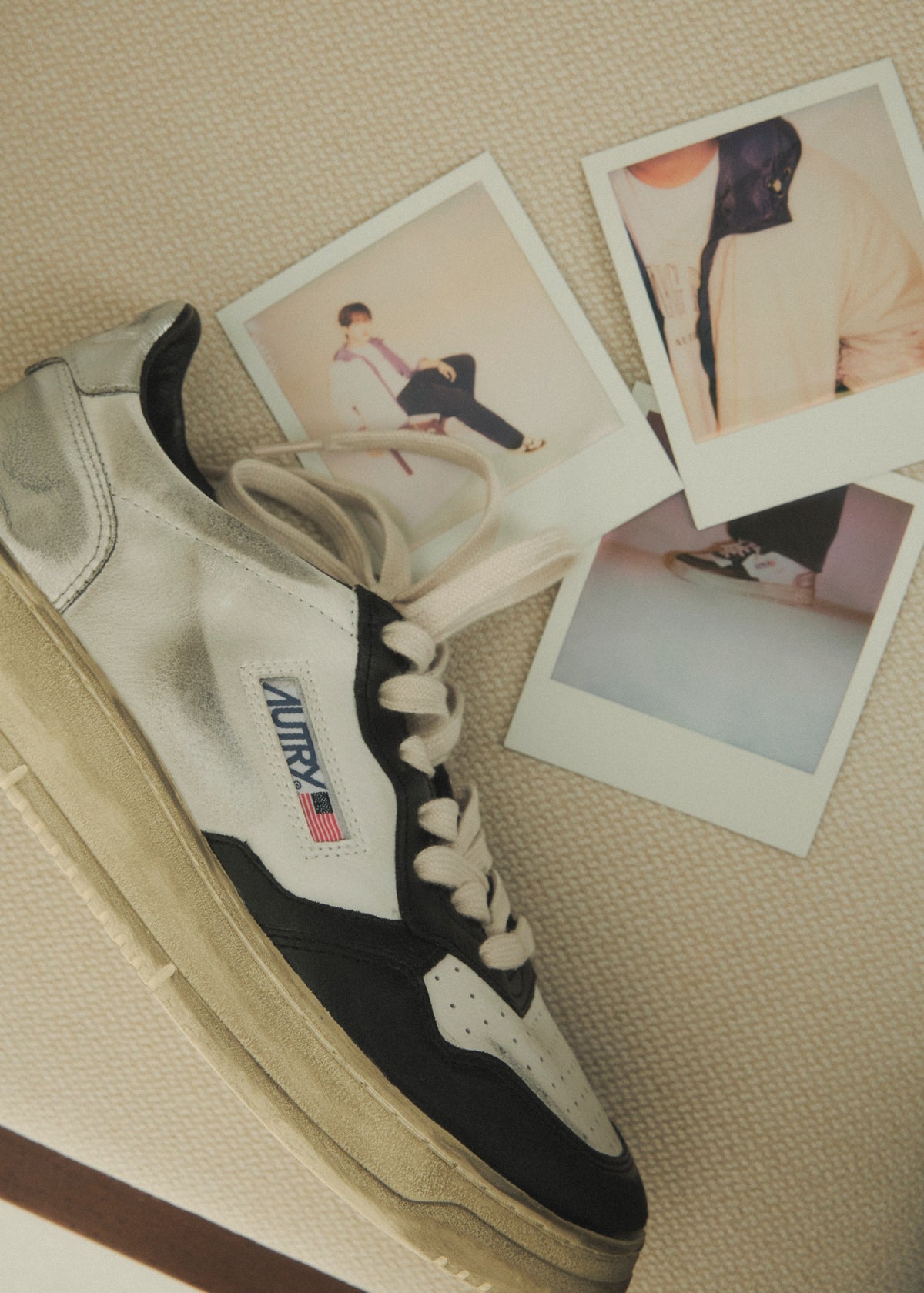 スタイリングを完成へと導くのは、オートリーを代表するフットウェアアイコンの数々です。イタリア職人の精緻な手仕事によって磨き上げられた「Super Vintage Medalist」は、80年代のクラシックなシルエットを現代的に昇華した一足で、ブランドの哲学を凝縮した存在感を放ちます。