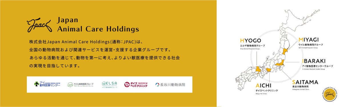株式会社Japan Animal Care Holdings(JPAC)は、全国の動物病院および関連サービスを運営・支援する企業グループです。