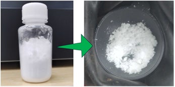 ベリリウム鉱石から回収したフッ化ベリリウムBeF2(白色で高純度のBeF2の精製に成功)