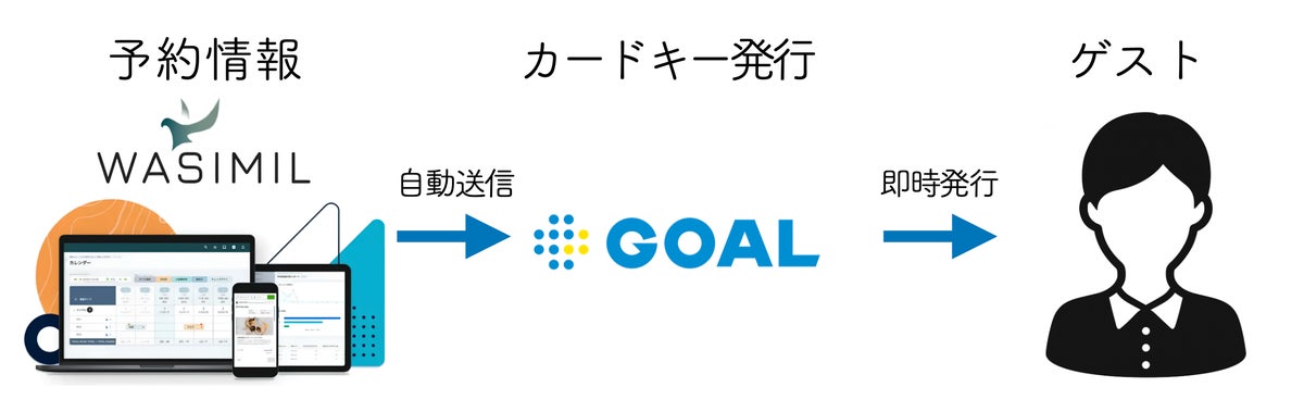 本連携により、WASIMILに登録された予約情報をもとに、ゴール製の物理カードキーを自動発行できるようになります。チェックイン時の手入力作業が一切不要となり、フロント業務の効率化とゲストの待ち時間短縮を同時に実現します。