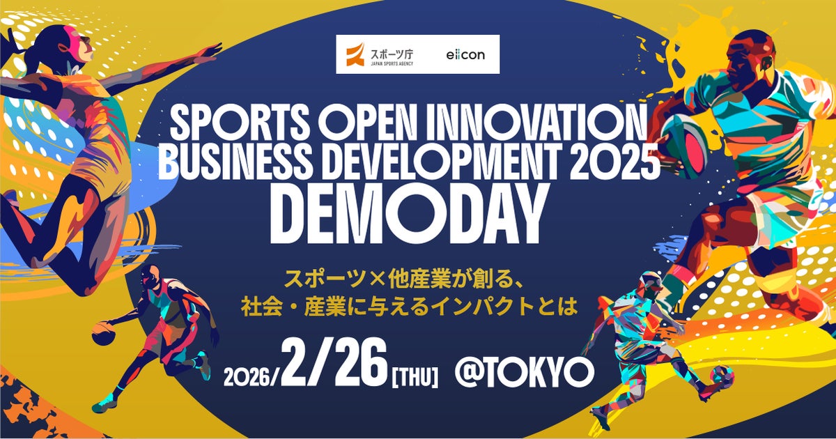 日本最大級のオープンイノベーションプラットフォーム「AUBA(アウバ)」を運営する株式会社eiicon(エイコン 本社所在地:文京区後楽、代表取締役社長:中村 亜由子、以下「eiicon」)は、2026年2月26日(木)、室町三井ホール&カンファレンス Hall(東京・三越前)にて、『SPORTS OPEN INNOVATION BUSINESS DEVELOPMENT 2025 DEMODAY(以下、本DEMODAY)』を開催。