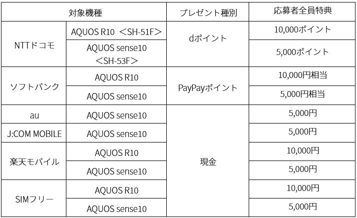 シャープは、スマートフォンAQUOS R10もしくはAQUOS sense10をご購入の上、ご応募いただいたお客様を対象に、最大1万円相当のポイント付与またはキャッシュバックをする「AQUOS春キャンペーン」を、本日2月27日(金)より開催します。
