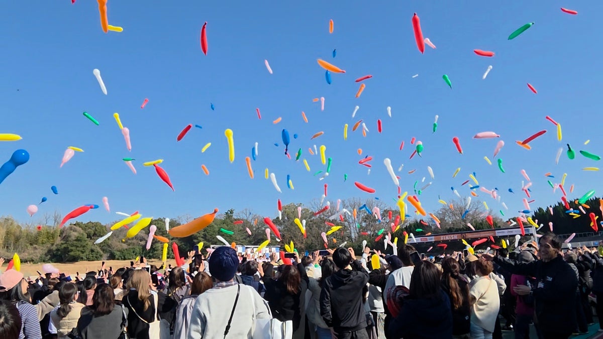 メイン種目の「77分間耐久リレーマラソン」では、ランナーたちが真剣な表情でタスキをつなぎ、沿道からは温かい応援が送られました。 大会のフィナーレでは、参加者全員によるバルーンリリースが行われました。それぞれの想いを乗せて空へ放たれた無数の風船は、皆渡星七さんの夢が多くの人々に受け継がれたことを象徴し、会場は深い感動と一体感に包まれました。