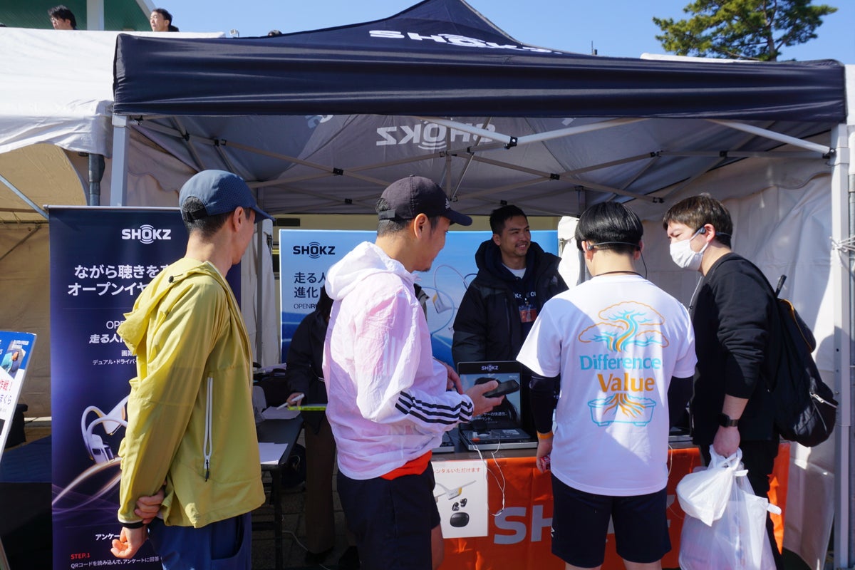 Shokzは、本大会のパートナー企業としてブースを出展しました。耳をふさがないShokzのイヤホン「OpenRun Pro 2」は、音楽を楽しみながらも、仲間との会話や沿道の声援をありのままに感じることができます。 ブースを訪れた多くのランナーに、オープンイヤーならではの「つながる」体験を提供し、「応援の声がしっかり聞こえるので、最後まで頑張れた」といった喜びの声をいただきました。