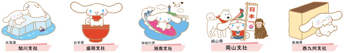 これらのデザインは、地域の皆さまとのつながりをより深めたいという想いから、当社職員が寄せたご当地ゆかりのモチーフをもとに描き起こしされました。特別ページでは、日本各地の“じもと” シナモロール 全64デザイン※を一挙にご覧いただけます。