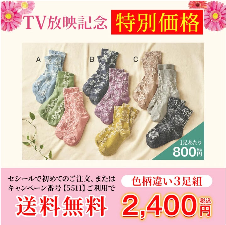 淡路島の熟練工と一緒に、試行錯誤を重ねて完成させた完全国内生産にこだわった高品質な靴下です。肌側の凹凸が少ないフラットな仕様で丁寧に編立てているので、やわらかくもサラッとした綿の風合いが心地よく肌になじみます。テレビ放映記念企画として、色柄違い3足組を税込2,400円でお買い求めいただけます。