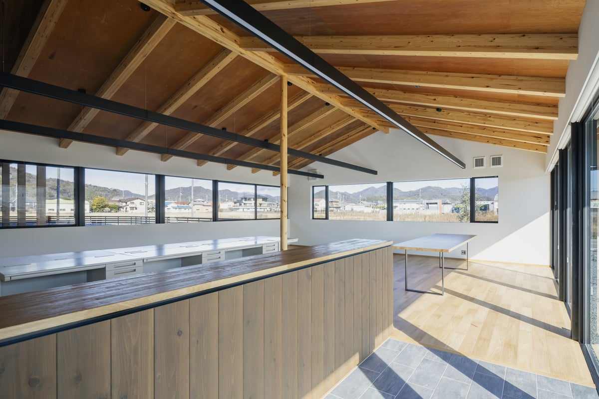 【休憩棟】約22坪、木造、休憩、ミーティング、ワークショップ、災害時の一時避難場所としても機能する多目的スペース。