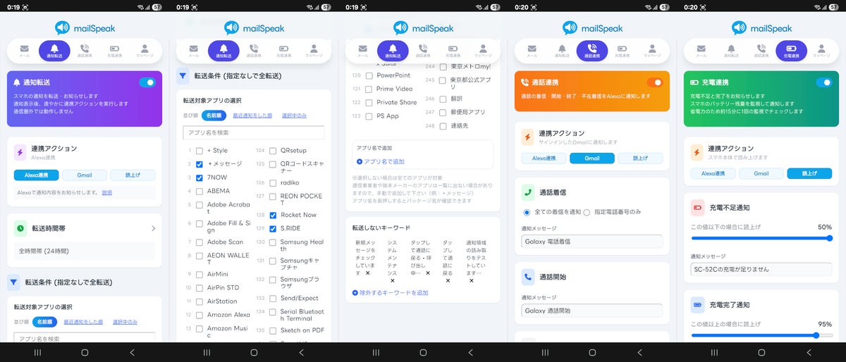 アプリ通知や着信・充電イベントを自在に共有・転送できる『mailSpeak』アプリ版が、2年超の開発を経て3月に公式リリース。最大5台のスマホ同士、Alexa、メールに対応