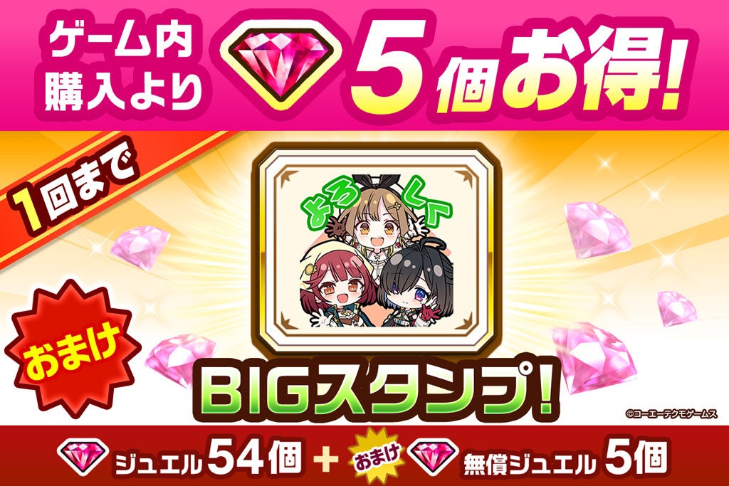 さらに、『白猫』公式ストアでは、イベントの開催を記念して、「★5キャラ1体確定権」が付いたお得な「プレミアムジュエルパック」や、「アトリエ」シリーズキャラクターの衣装を着たエマ、リーラン、シルファを仲間にできる「コラボ衣装キャラ交換券」がついたジュエルパックなども販売しております。