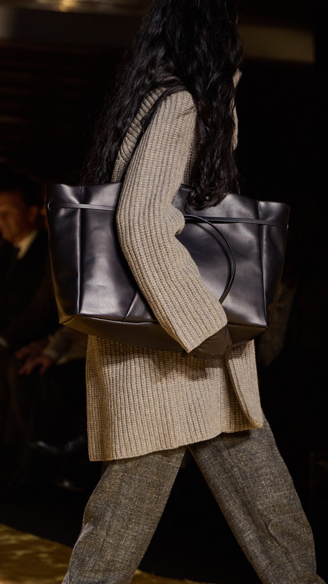 イタリアでハンドクラフトされたBOSS リヴァース バッグも、特別なランウェイエディションとして登場。2026年春夏コレクションで新たなヒーローアクセサリーとして発表され、スーツのラペルを着想源とするこのバッグは、テーラリングにおける力強さと精緻さの象徴として、フロントロウのゲストたちの腕元にも見られました。