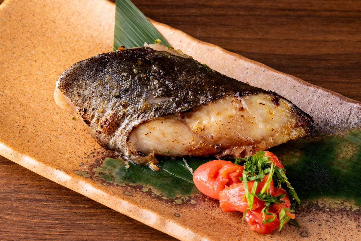 炉瓶の象徴は、旬魚を丸ごと焼き上げる「一本焼き」。その日最良の魚を料理長が厳選し、炭火で丁寧に火入れします。