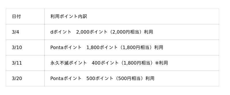 2026年3月1日(日)~2026年3月31日(火)ポイント還元の具体例