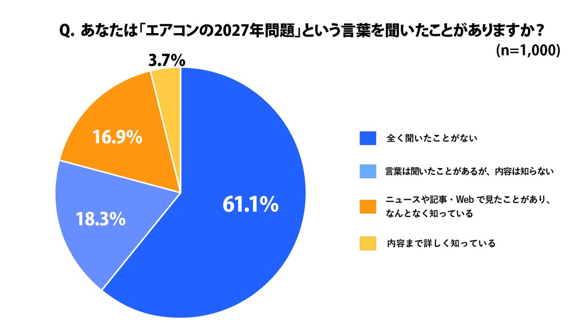 「あなたは「エアコンの2027年問題」という言葉を聞いたことがありますか?」という問いに対して「内容は知らない」「全く聞いたことがない」という方は約8割に及びました。